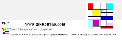 Piet is another esoteric programming language where the code resembles an abstract painting. It uses 20 Distinct Colors which are arranged in Blocks.