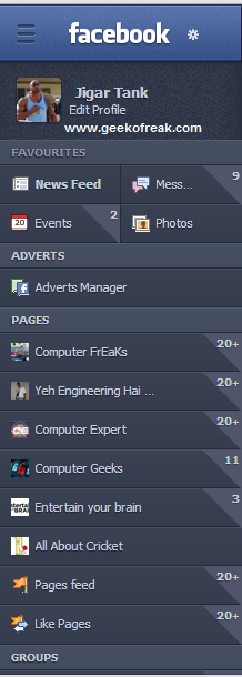 This is how my facebook looks ,Its just a left panel.