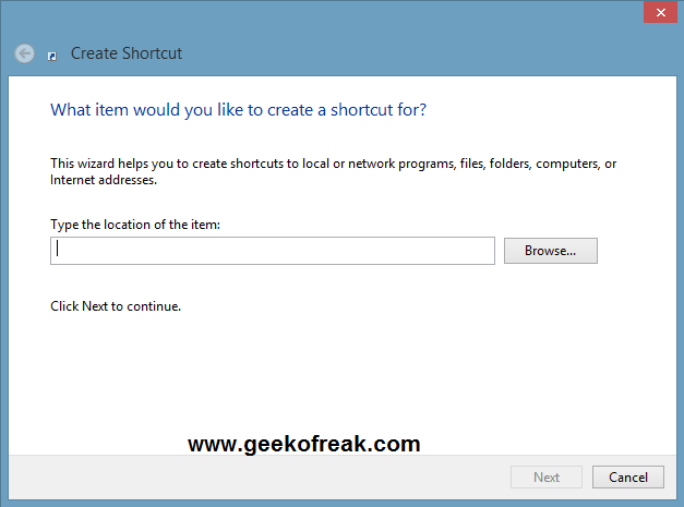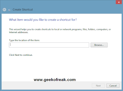 Step 3 : After entering the Command , click on next. Now it will ask you to give a name to the shortcut.