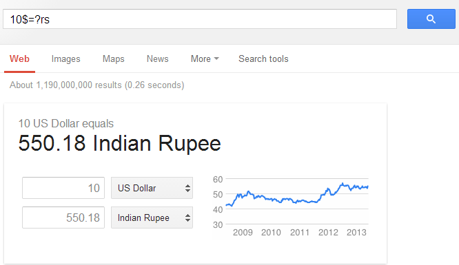 Google Can even do Currency Conversions for you. Refer the below pic,How i have Converted 10 USD to Indian Rs.. You can Also type Usd to Rs to see the exchange rate of Both Currency